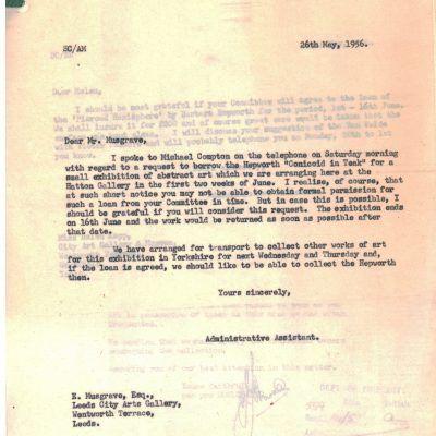 Letter requesting to borrow Barbara Hepworth’s ‘Conicoid in Teak Wood’